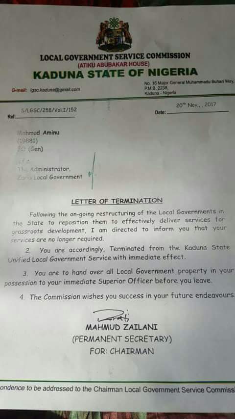 On Tuesday 28th, Kaduna State Government sacked 4,042 workers in the 23 local government areas of the state.