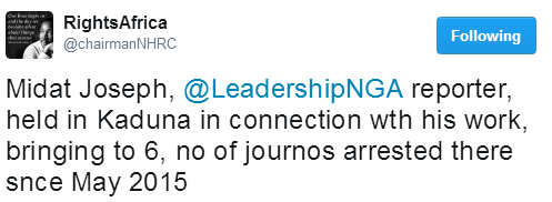A Journalist arrested in Kaduna state for allegedly writing a report criticising Governor Nasir El-Rufai