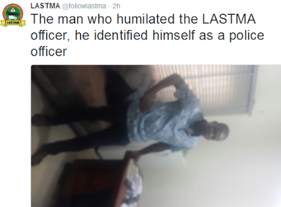 Authority LASTMA on their twitter wrote that, a police escort brutalized and handcuffed a LATSMA
