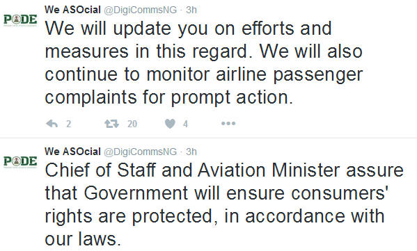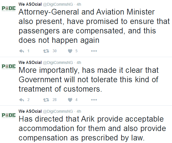 Also summoned the Chief of staff was the Minister of State for Aviation, Hadi Sirika. The Chief of Staff ordered Arik to provide accommodation for the stranded passengers as well as compensate them.