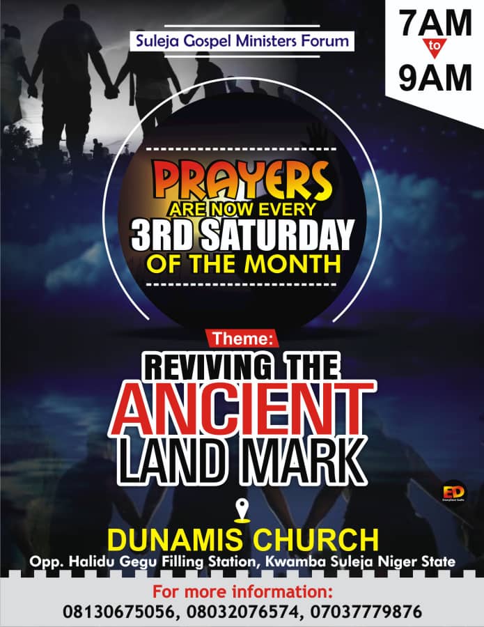 Suleja Gospel Music Ministers Forum announces a special prayer session for all gospel music ministers tagged: Reviving The Ancient Land Mark.