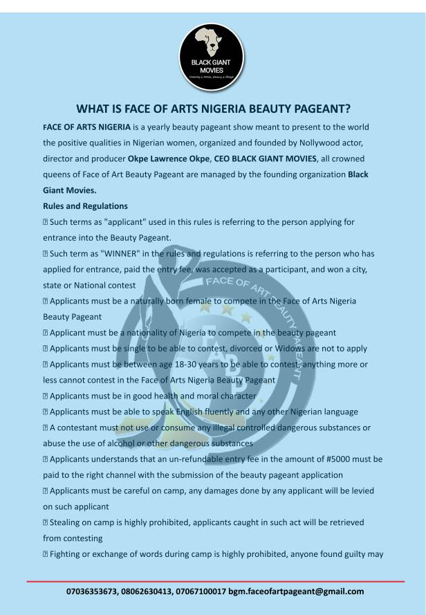 Black Giant Movies in collaboration with TONAK Media , Entertainment and consultancy is here with Face of Arts pageant…