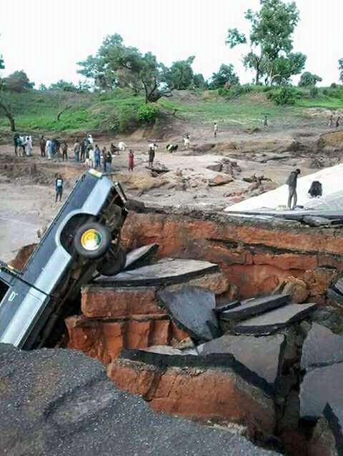 A Facebook user has via his Facebook time line inform the general that those plying kontangora, Jebba and mokwa road should not go via tatabu village as a bridge in tatabu village has collapsed. Photos shows that there are casualties as cars were seen falling along side the collapsed bridge. See photos below….