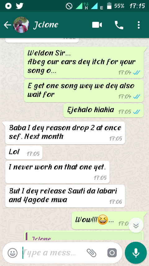 Jclone revealed the release of his new songs while he was in a talk with IAMBESTNETWORKS on a video he posted on his WhatsApp status. Our representative told him how eager his fans wanna listen to his new songs especially “Ejekalo Kikia”and he said he hasn’t work on that one yet. He further said ” Baba I dey reason drop 2 at once sef. Next month”