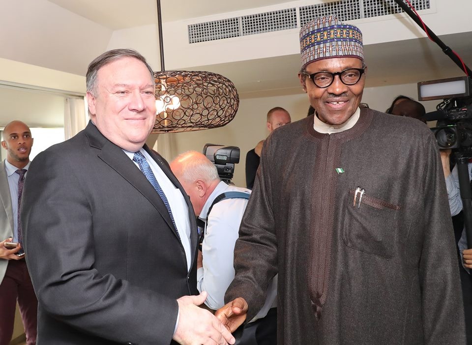Buhari meets US Secretary of States, Mike Pompeo (photos)By admin / September 29, 2018 Share thisFacebookXEmailWhatsApp Nigerian President, Buhari last night met with the United States Secretary of States, Mike Pompeo at the United Nations General Assembly 73rd Session held in New York, USA. See more photos below.