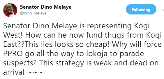 Dino Melaye took to his twitter handle to react to yesterday’s parading the police of two political thugs allegedly contracted him.