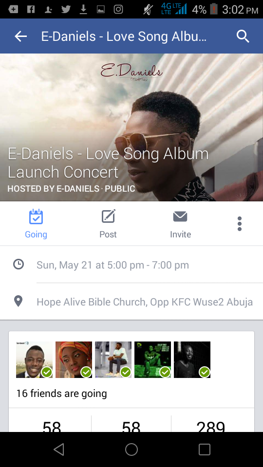 The Venue still remains Hope Alive Christian Center, ground floor, Standard plaza, beside RCCG Central Parish opposite KFC, Wuse 2, Abuja. E-Daniels is set to take his music to the next level in an event that features the likes of Solomon Lange, Prosper Ochimana, Simeon and the Limitless band.