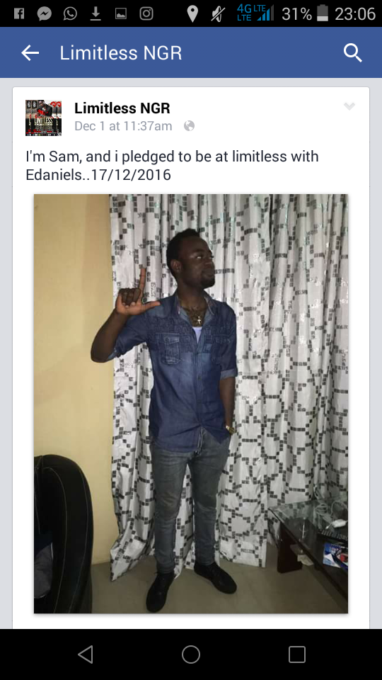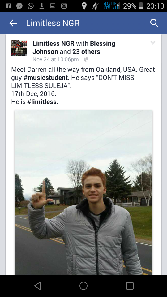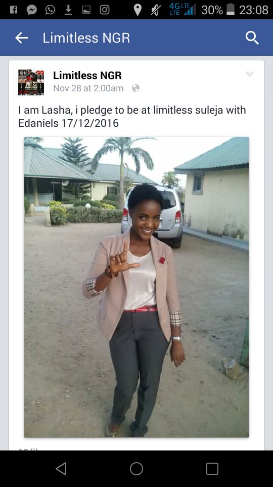 If there is any where you should rather be on Saturday 17th December 2016, make out time to be at #Limitless…. See photos of the Limitless “L” sign.