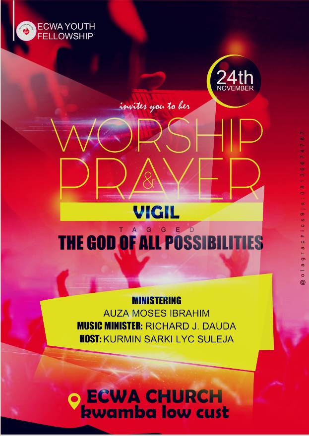 Here is powerful night of Prayer and worship put together ECWA youth fellowship Kurmin Sarki LYC Suleja of Niger state on the 24th November 2017.