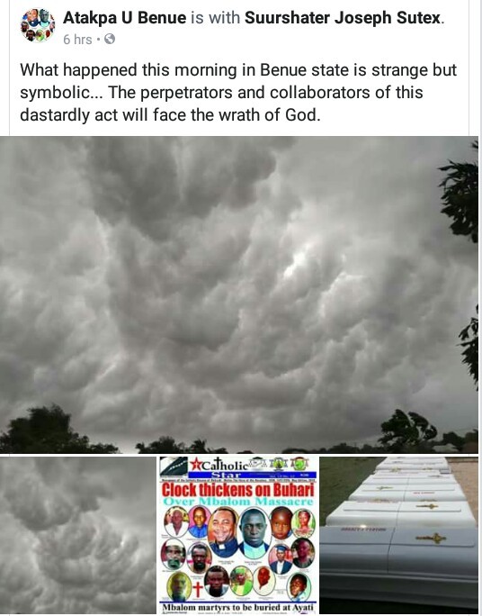 Facebook user claims that something happened as Catholic priests and 17 Parishioners were buried in Benue todayBy admin / May 23, 2018 Share thisFacebookXEmailWhatsApp