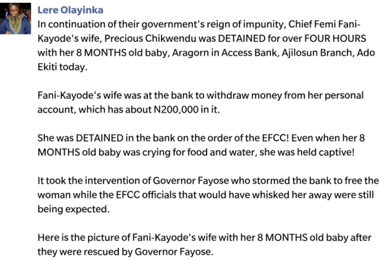 FAYOSE PICTURED WITH FFK’S WIFE PLUS A STATEMENT ABOUT FFK’S WIFE ARREST BY fAYOSE’S MEDIA AIDBy admin / October 18, 2016 Share thisFacebookXEmailWhatsApp This is what fayose’s media aide has to say