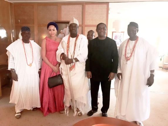 Our reporter, this morning Saturday received photos of Femi Fani-Kayode and his wife Precious paying a courtesy visit to Oba Adeyeye Enitan Ogunwusi Ojaja II, the 51st Ooni of Ife…. See them in this historic photos
