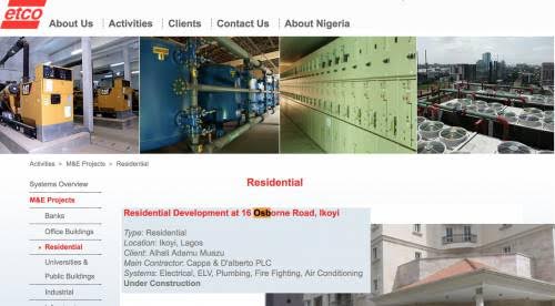 Etco Nigeria Limited, a construction firm partly owned an Israeli company, Electral Limited, prides itself as haven built several residential and corporate complexes in Abuja, Port Harcourt, and Lagos including the property at No 16 Osborne Towers, Ikoyi, Lagos, where EFCC recovered over $50 million cash stashed away in fire-resistant cabinets behind a false wall on Wednesday afternoon.