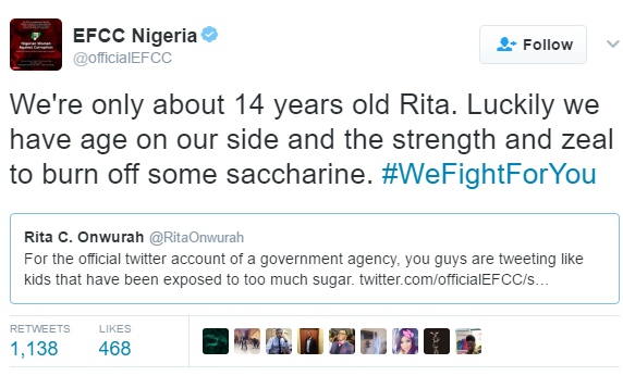 Funny read EFCC epic reply to a twitter userBy admin / February 15, 2017 Share thisFacebookXEmailWhatsApp