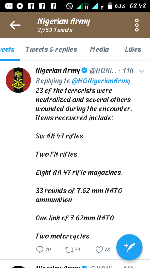 The Nigeria military some hours ago declared on their twitter handle their recent achievement in the fight against Book Haram. This is what they said: