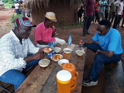 local joint in Gbajimba village eating and flexing akara and pap. The governor,