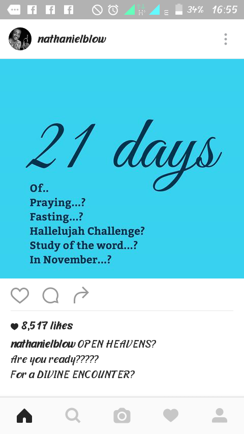 This is coming after the first was a hit and it was viewed all over the world. He through Instagram announced that this is gonna last for 21 days with fasting, prayer and study of God’s word. Its gonna be via his Instagram platform starting from November 1st to 21st 2017.
