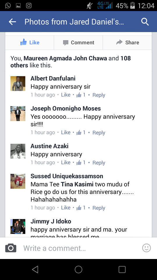Blessing Daniel who is a sister to Jared took to her Facebook wall and celebrated the couples