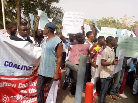 A Facebook user/account with the name “Abuja Politics” displayed photos of a protest currently going on in Abuja today Thursday, 17th January.