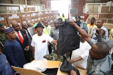I raised a point of Order today that Kogi State Govt imported prohibited items. Military Uniforms,bullet proof vest,night vision goggles, tactical boots, military belts etc. A committee was set up immediately and they proceeded to the Airport. Jerry Omolara SA security to Kogi State Governor is involved. Kogi is in trouble. But God is above man. – SDM