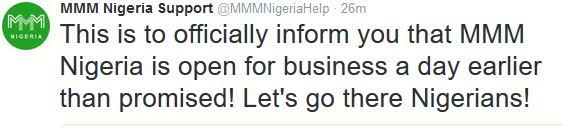 MMM Nigeria is back and this was disclosed its statement its official twitter account