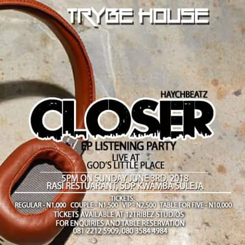 The EP is set to be released in June. Join HaychBeatz this weekend at the CLOSER listening party LIVE at God’s Little Place event. Sunday June 3rd, 5pm – Rasi Restuarant, SDP Suleja.