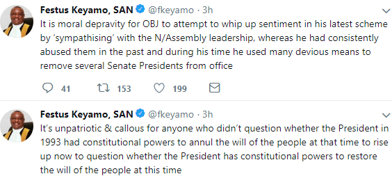 ”Obasanjo’s outburst is just a childish prank” Festus KeyamoBy admin / June 9, 2018 Share thisFacebookXEmailWhatsApp