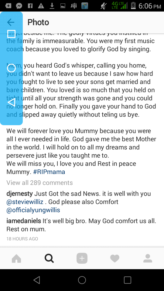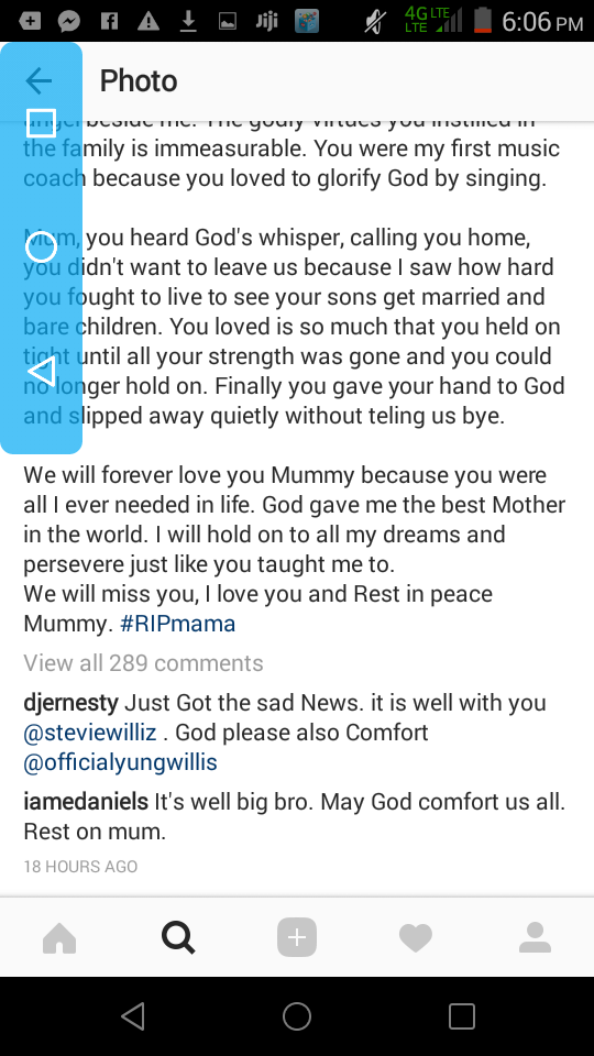 Steve Williz a popular gospel singer based in Abuja lost his mum yesterday 13th September 2017. Though the cause of her death has not been officially disclosed any of the family member. Steve williz took to his instagram to announce the death of his beloved mum. The singer is said and set to wed soon but see what death has caused. We sympathise with the family and we say may her soul rest in peace. Amen… Below is his instagram post….