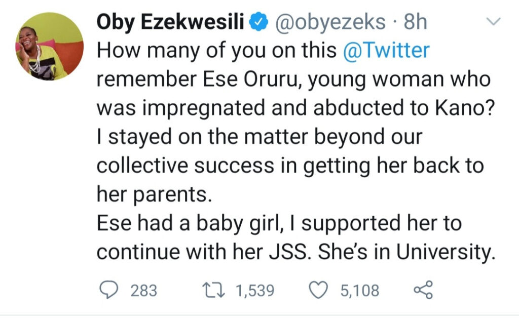 Young teenage girl miss Ese Oruru Charles in 2015 whose story made news headlines in 2015 for being kidnapped in