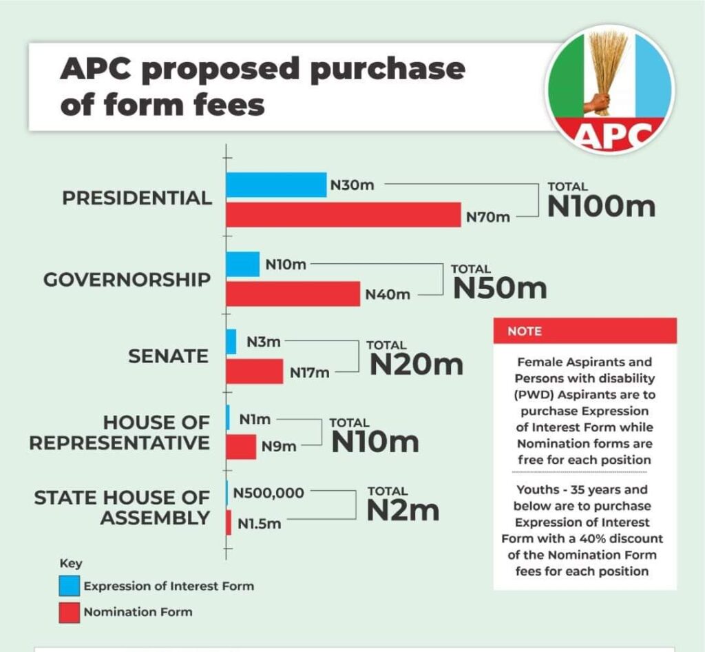 The All Progressive Congress (APC) today released her proposed purchase of form fees which has got everyone talking. This was