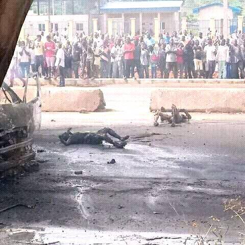 News reachibg us tonight that No fewer than 10 persons were burnt beyond recognition in a Fuel tanker accident that occurred at the Felele area in Lokoja, Kogi state earlier today. Most of the victims were passengers in an 18-seater commercial bus. FRSC officials attribute the accident to head-on collision between the commercial bus which was coming from Abuja and the petrol tanker that was coming from the opposite direction. Here are more photos after the cut…