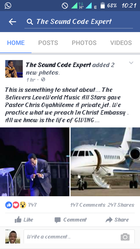 Photos: Christ Embassy G O receives private Jet as gift from Believers love world Music All StarsBy admin / November 20, 2017 Share thisFacebookXEmailWhatsApp This is as shared on social media sound code