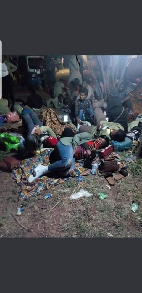 Below are photos showing how they were not provided adequate sleeping facilities in fact, some of them slept while standing, some on open air while some slept sitting in a bus.