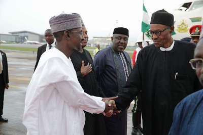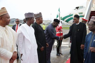 photos of Buhari’s return to Abuja from Germany