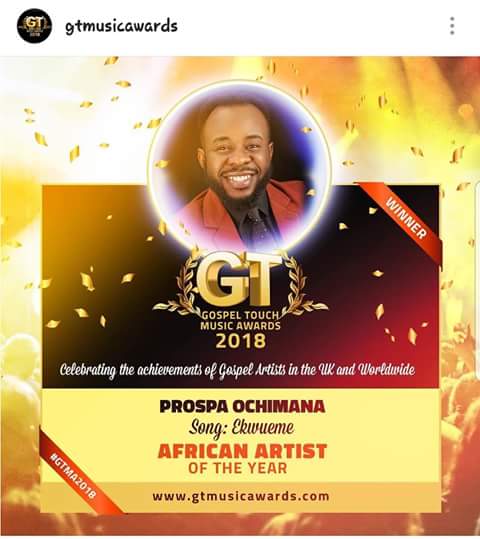 Composer and singer of Ekwueme, Prospa Ochimana announced yesterday his victory as African artist of year; an award organized Gospel Touch Music Awards. His spirit filled song Ekwueme gave him the victory. See photos below: