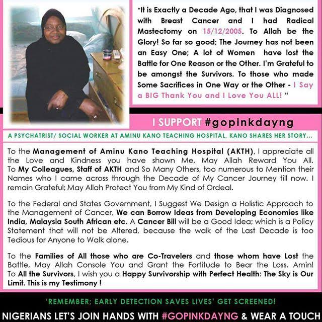 I am best networks reporter gathered that Rahama who is a social worker at Aminu kano General hospital Kano is marking her 10 years of surviving cancer. She narrates her experience how she passed through hell. She says she is thankful to God and she had to take a selfie as part of the celebration