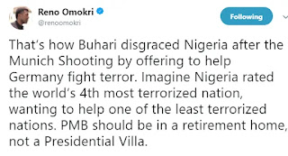 Reno Omokri says “President Buhari should be in a retirement home, not a Presidential Villa”By admin / March 8, 2018 Share thisFacebookXEmailWhatsApp