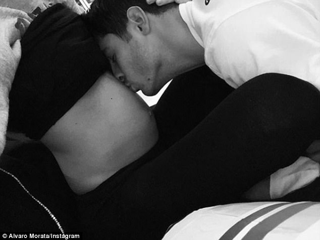 Posting an adorable photo of himself kissing Campello’s stomach on Instagram, the former Real Madrid star wrote: ‘The first time I saw you I knew you were going to be the mother of my children and I am sure that you will be the most beautiful and sweet and good mom. I can not love youany more!’