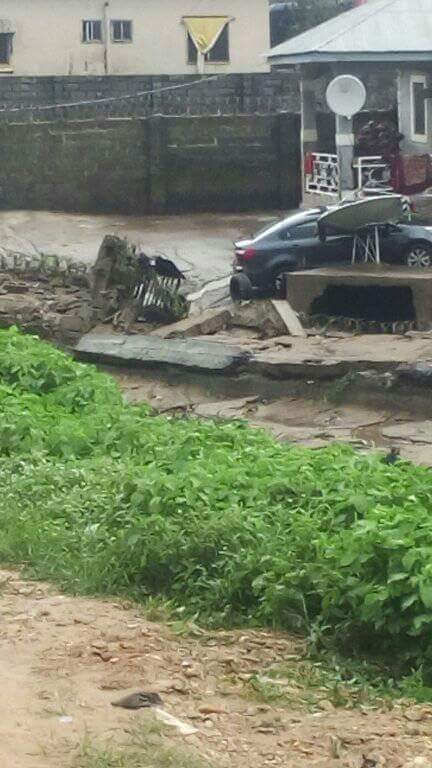 A heavy but brief rain fall was experienced today in 2nd gate, Kwamba Suleja of Niger State. This rain fell just few hours with lightening and thunder and it destroyed a newly constructed bridge that has not lasted up to 4months.