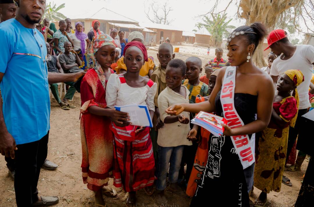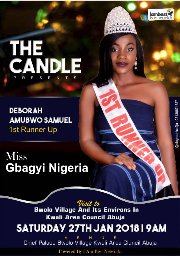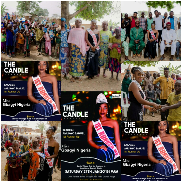 Queen Deborah Amubwo Samuel 1st runner up miss Gbagyi Nigeria and the founder of THE CANDLE last weekend 27th January 2018 made a lasting impact as she rendered a selfless humanitarian service at Bwolo village and its environs in Kwali area Council Abuja.