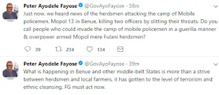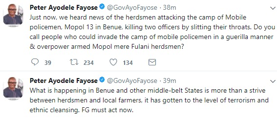 True or False? – What is happening between herdsmen and local farmers has gotten to the level of terrorism and ethnic cleansing” Governor FayoseBy admin / January 9, 2018 Share thisFacebookXEmailWhatsApp