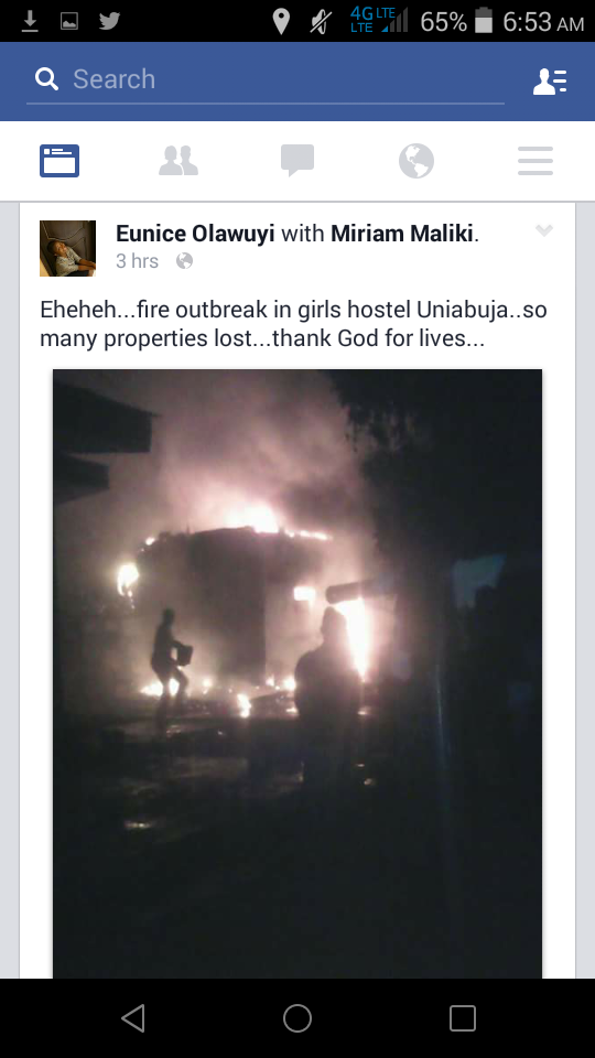 Today in the midnight the University of Abuja female hostel was engulfed with fire. This was disclose a female student of University of Abuja on her Facebook wall… See what she wrote below…