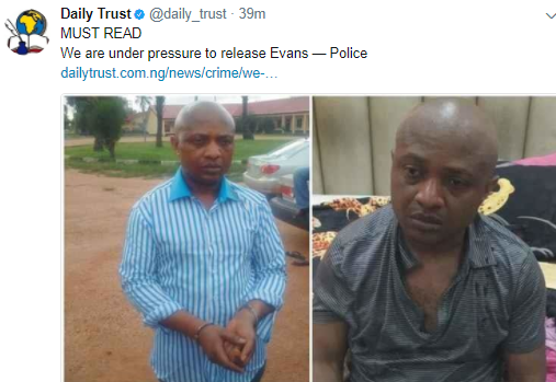 The Lagos state police authority says that the force is being pressurized to released billionaire kidnap kingpin, Chukwudumeme Onwuamadike alias Evans, Daily Trust reports.