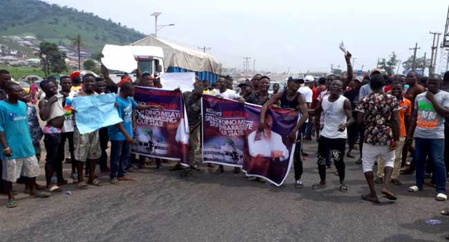 The youths numbering over a hundred, barricaded some streets in the state and asked that the bags of rice which were donated to Senator Dino Melaye, should be returned as the people of the state are not Internally Displaced Persons.